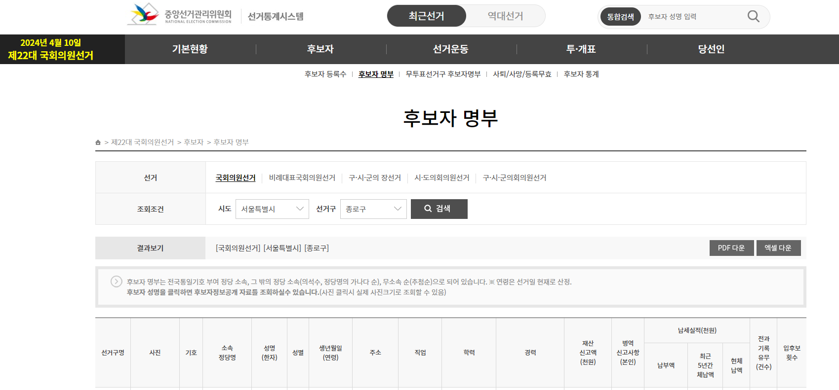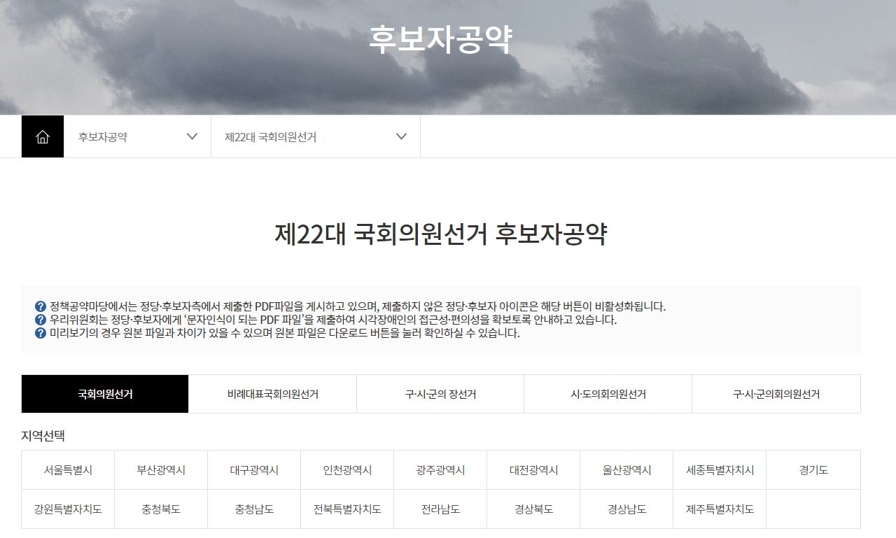 제22대 국회의원선거 후보자명단 & 공약 확인하기
