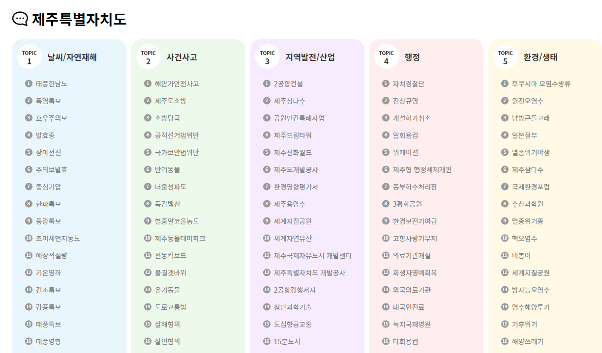 내가 알고 싶은 지역은 선택하면 이렇게 토픽 5개로 분류되어 내용을 확인할 수 있어요!