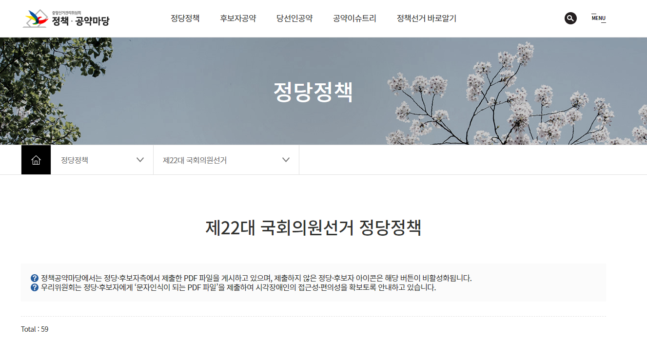 이렇게 정당정책도 쉽게 확인할수있습니다.