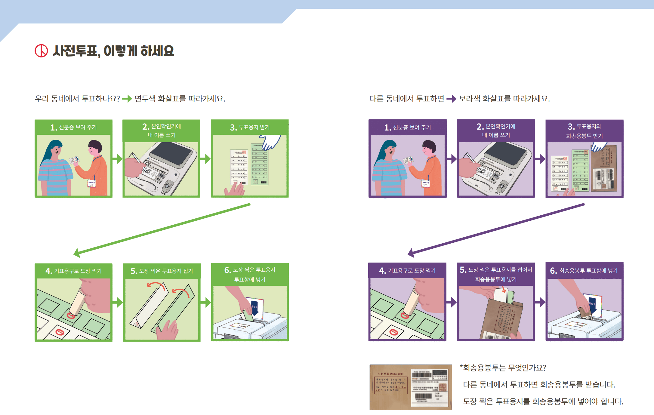 선거일에 모두 투표를 하면 좋겠지만, 사정상 당일에 하지 못하는분들은 사전투표가 가능합니다.